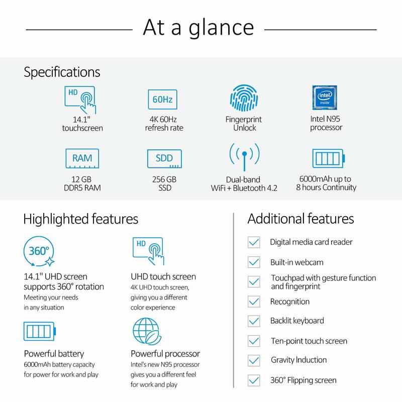 GXMO Thin Laptop 14.1Inch Laptop 8GB RAM 512GB SSD, IPS1080PLaptop, Intel Quad-Core(Up to 2.7GHz) J4125 Processor Windows 11 Pro laptops, HD Camera, Dual Frequency WiFi(2.4G/5G)
