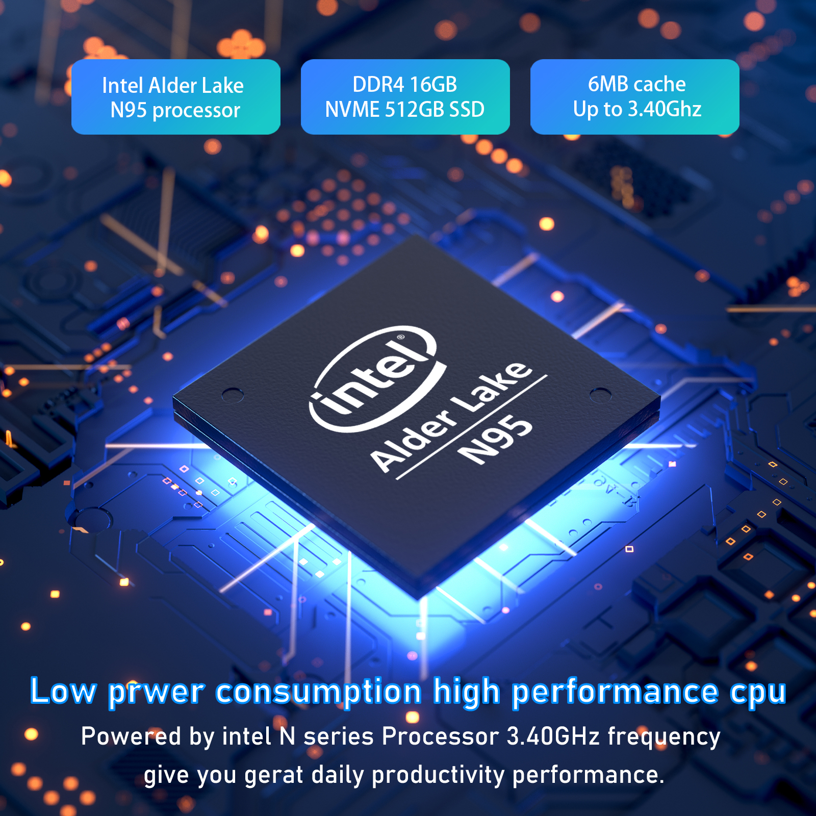 Laptop 15.6" IPS 1080P Notebook PC,16GB DDR4 512GB SSD, Quad-Core Intel 12th Gen N95 Processor, HD Camera,Windows 11 Pro Laptop, Fingerprint Unlock, Backlit Keyboard USB3.0 Port Type-C