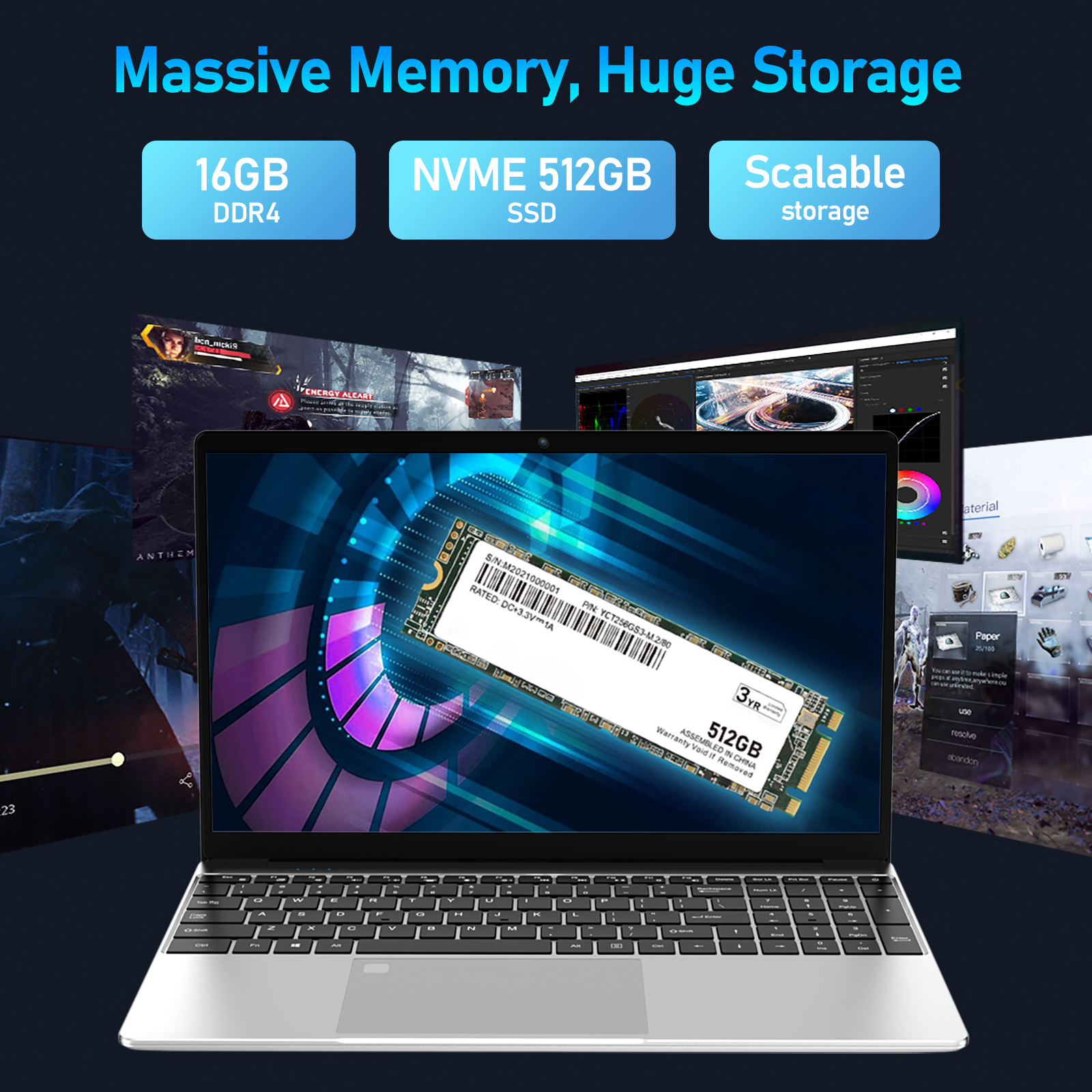 Elevate your computing experience with our notebook's lightning-fast 512GB PCIe NVMe SSD.