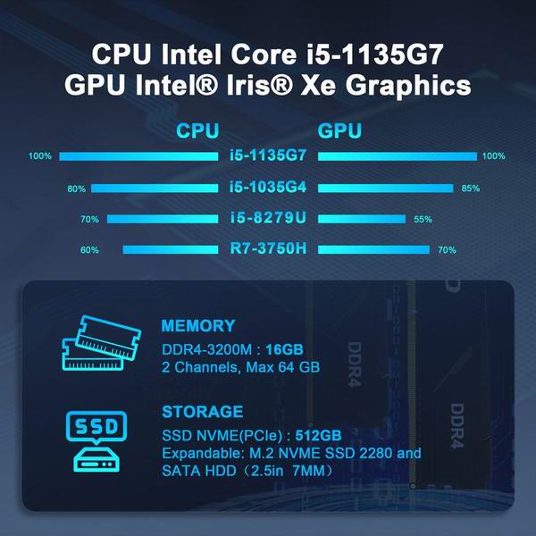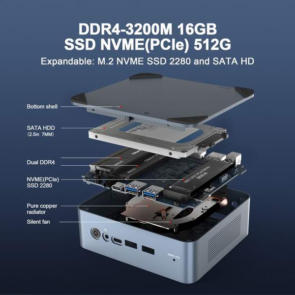 MINI PC WITH DUAL-CHANNEL DDR4 16GB RAM DDR4 512GB NVMe SSD